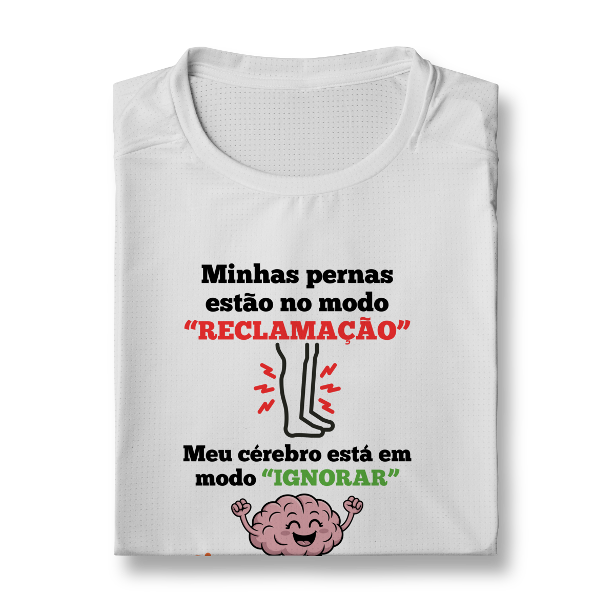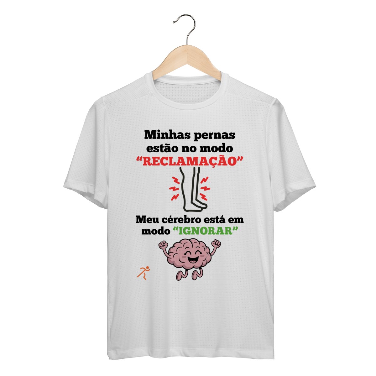 Se você já teve que negociar internamente com suas pernas durante o quilômetro final (ou até mesmo no primeiro), esta camiseta é a sua bandeira! Ela captura com humor a verdade universal da corrida: a dor é real, mas a força mental é maior.
